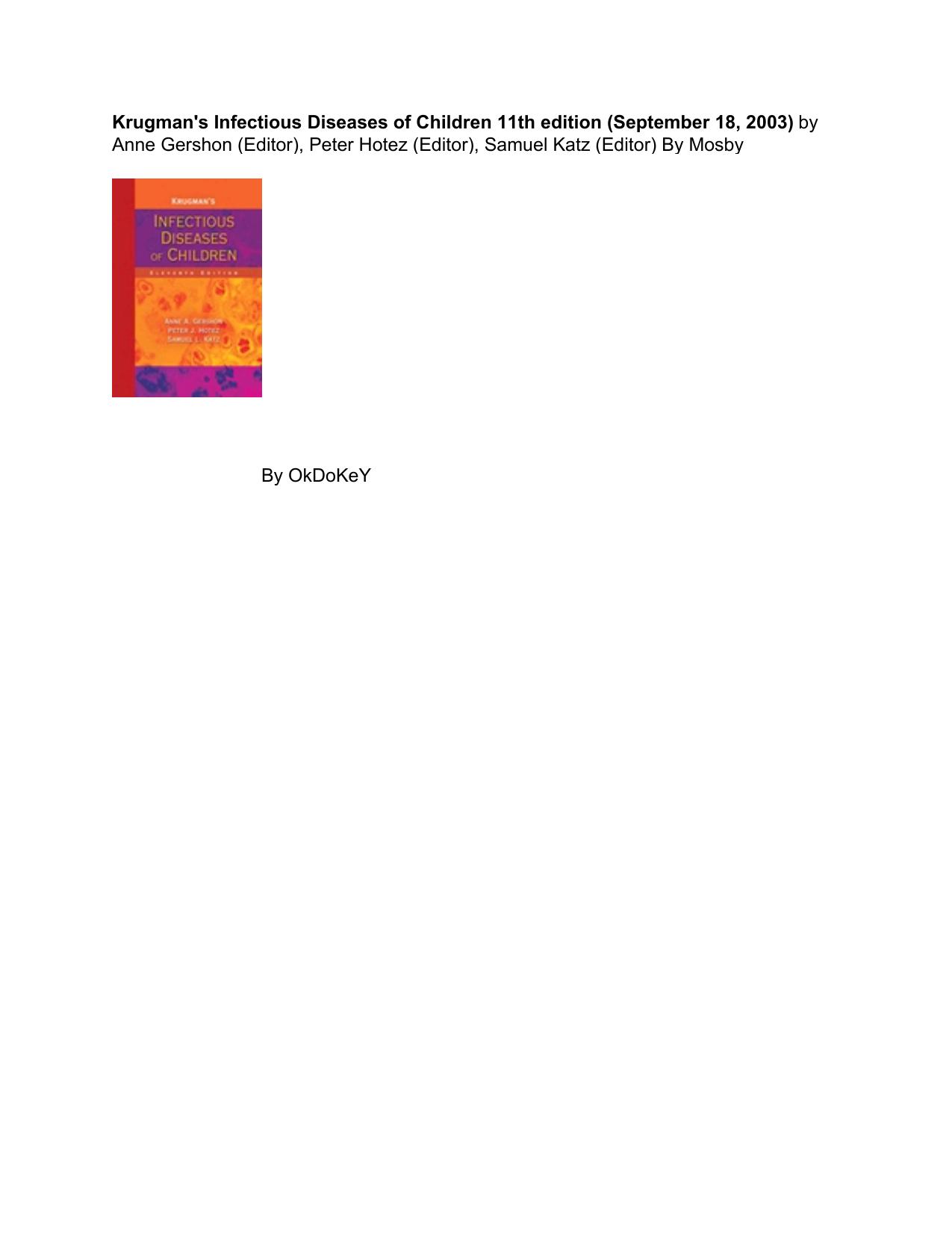 Krugman's Infectious Diseases of Children, 11th edition