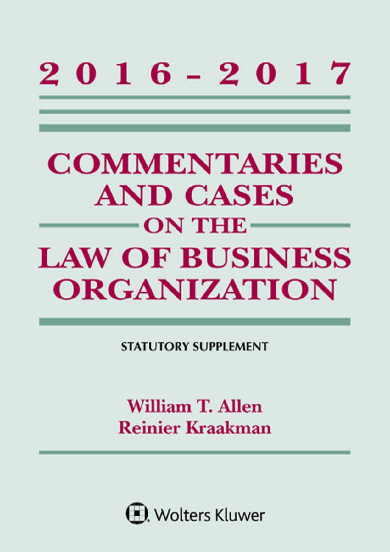 Commentaries and Cases on the Law of Business Organizations_ 20ments) - William T. Allen & Reiner Kraakman & Guhan Subramanian