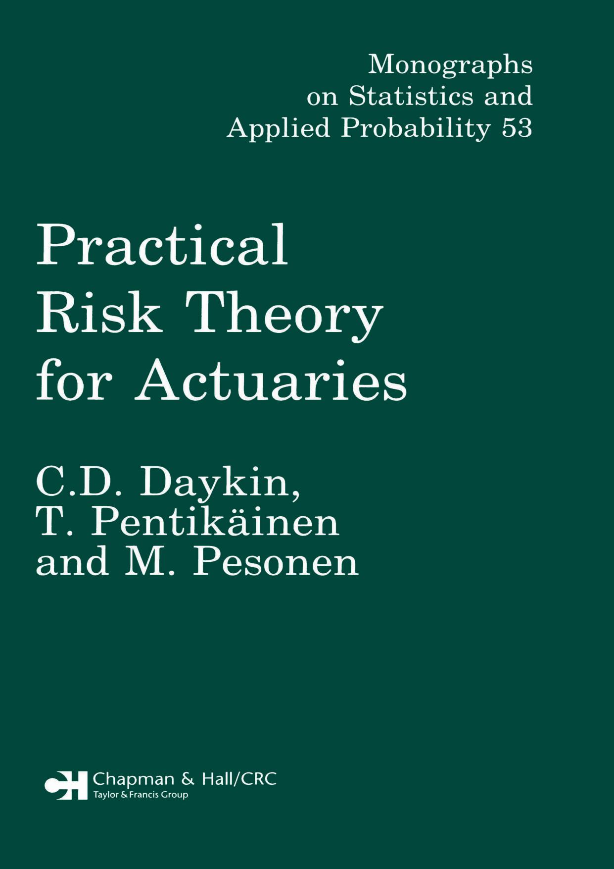 Practical Risk Theory for Actuaries - C.D. Daykin, T. Pentikainen & M. Pesonen