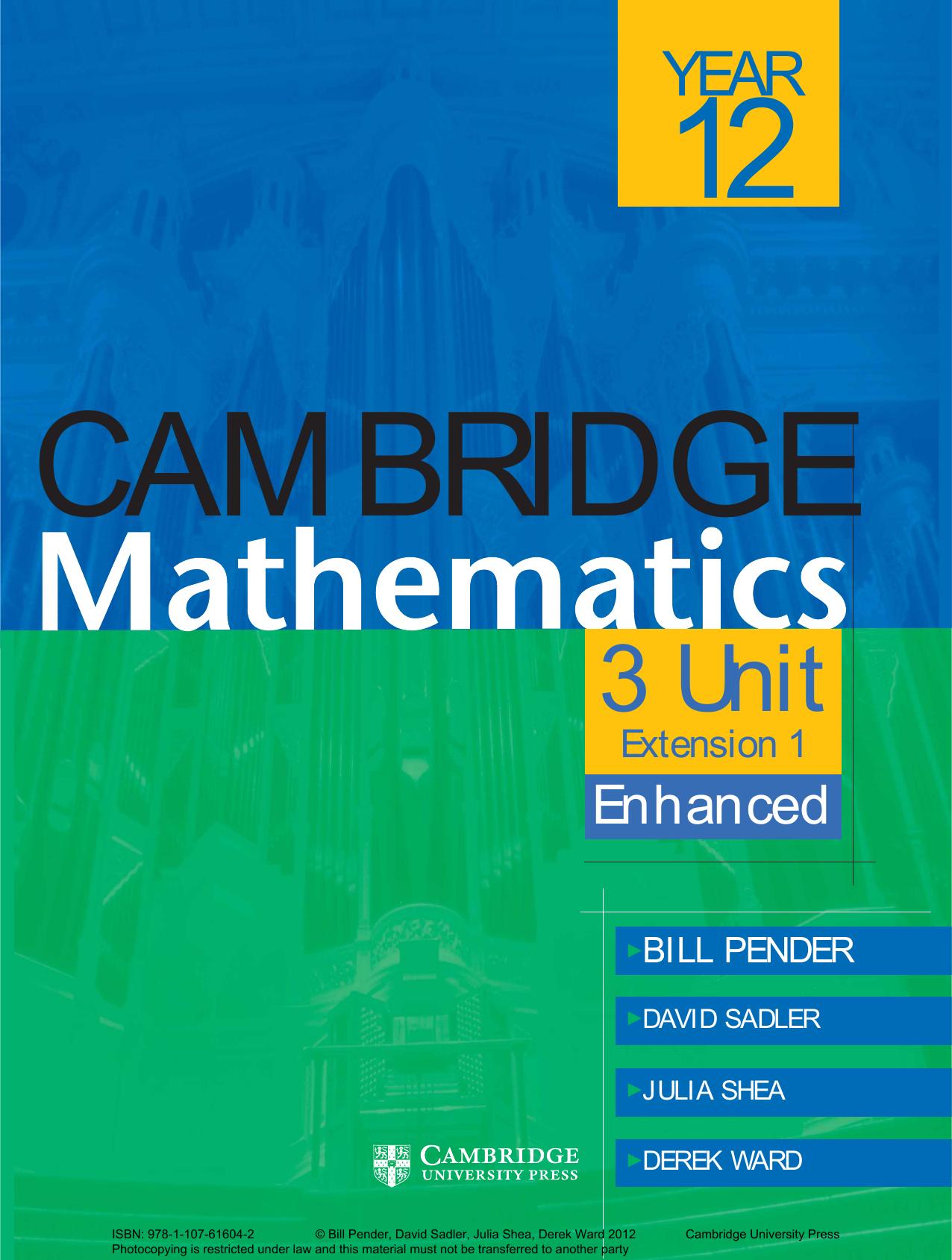 Cambridge 3 Unit Mathematics Year 12 Enhanced Version