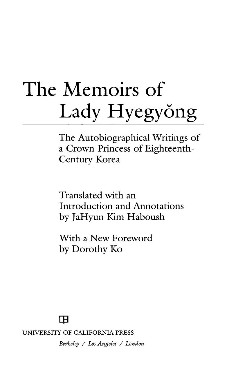 Memoirs of Lady Hyegyong The Autobiographical 1st, The - Hyegyonggung Hong Ssi,Haboush, JaHyun Kim_