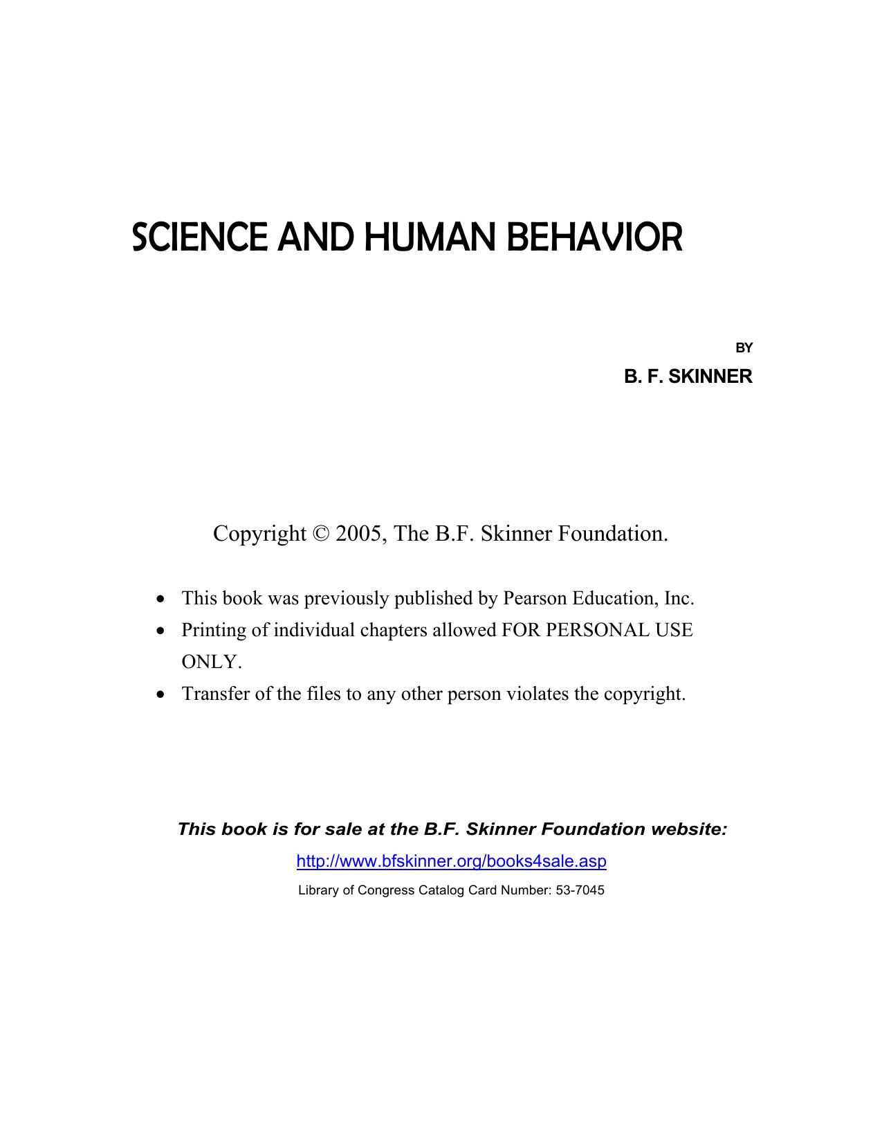 Science And Human Behavior by B.F Skinner