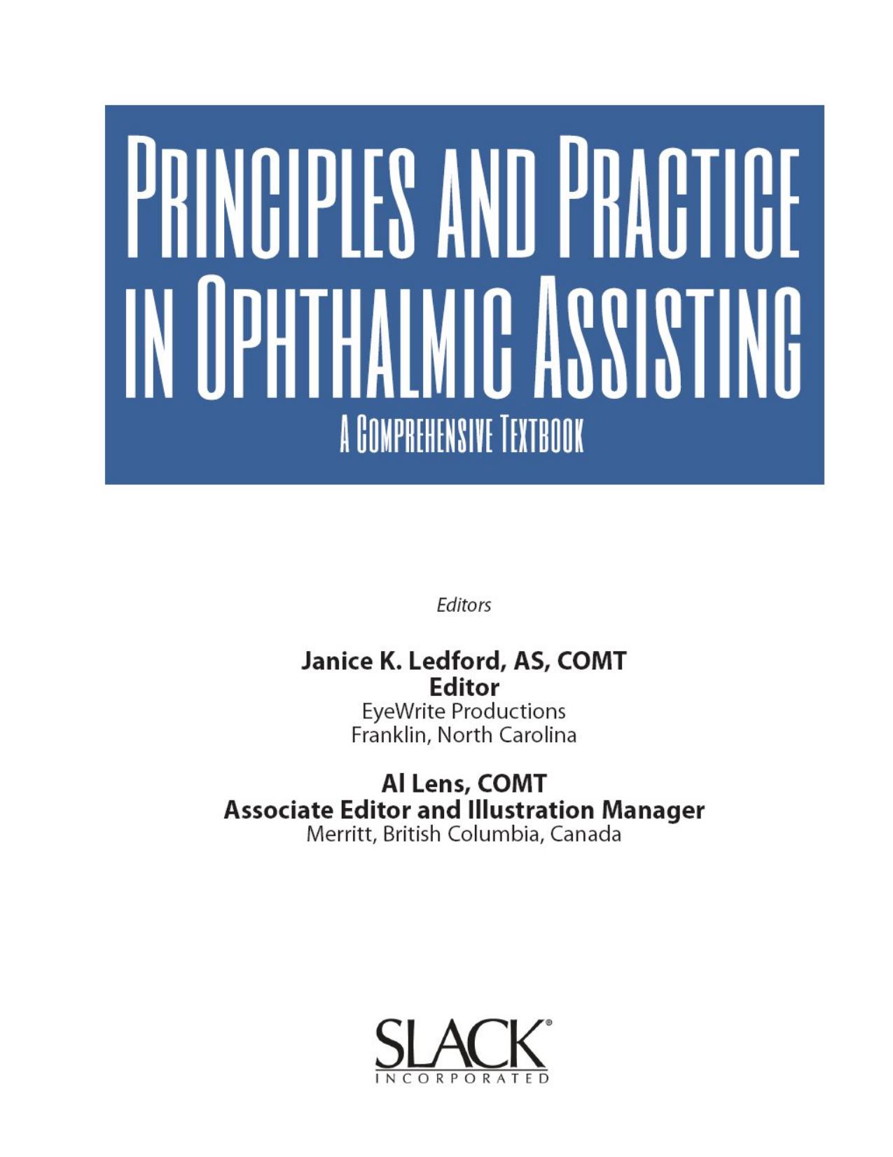 Principles and Practice in Ophthalmic Assisting - Janice K. Ledford COMT & Al Lens COMT
