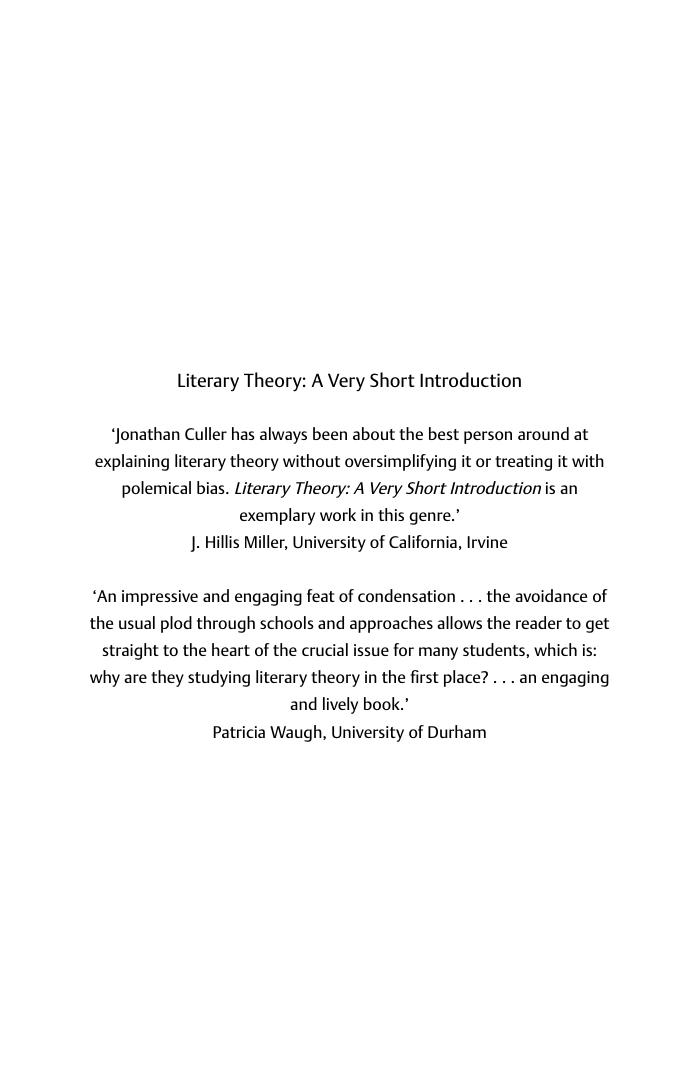 Literary Theory A Very Short Introduction