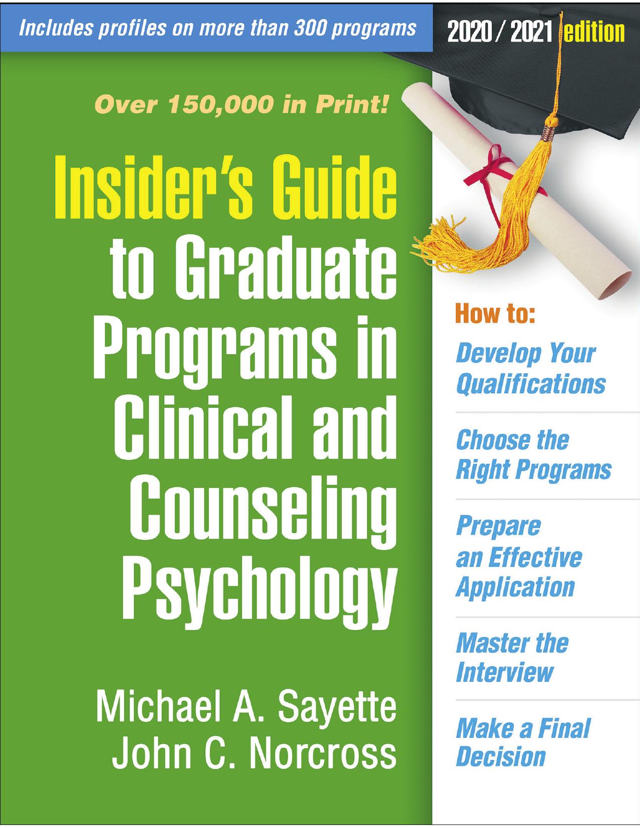 Insider's Guide to Graduate Programs in Clinical and Counseling Psychology 20202021 Edition - Michael A. Sayette