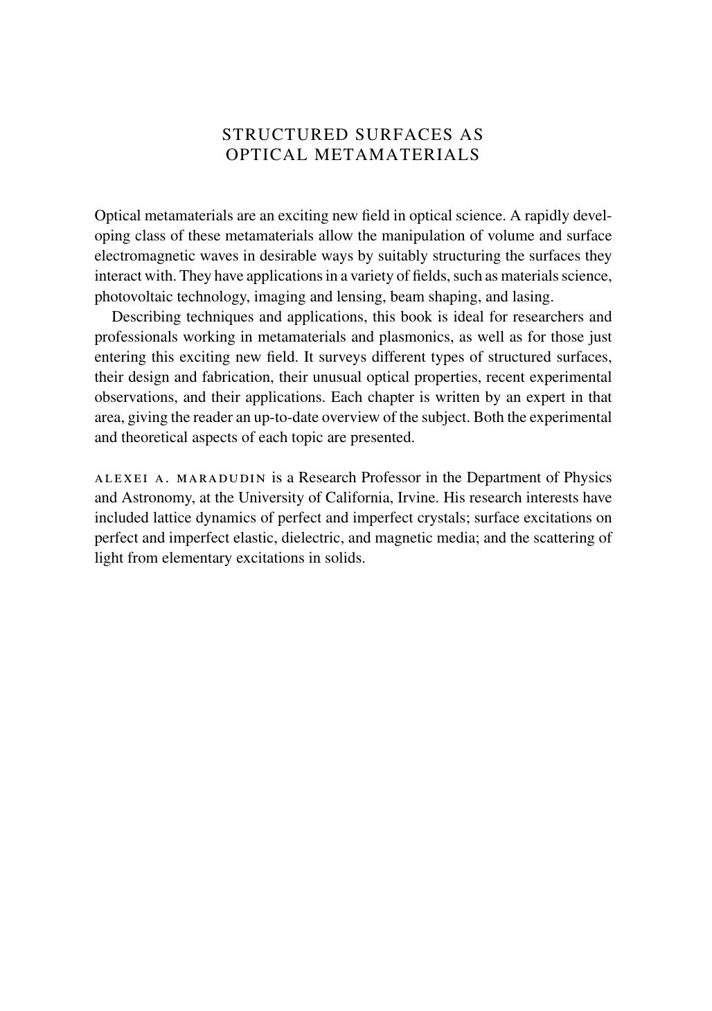 Structured Surfaces as Optical Metamaterials